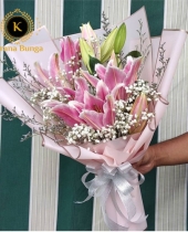 Rp 650.000Hand buket bunga terdiri dari : Bunga lily Baby breat Daun kaspea Free kartu ucapan