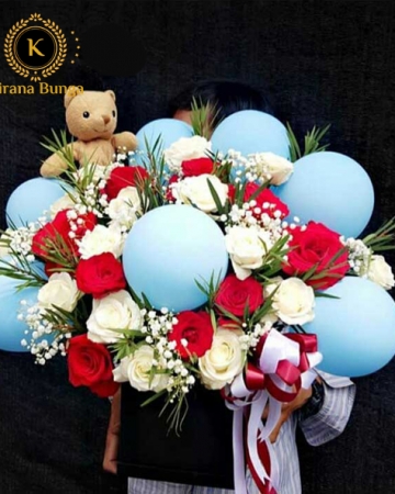 Rp 650.0001 Bh Bunga box terdiri dari : Mawar putih Mawar biru Pom-pom Boneka Balon Baby breat Kaspea Baby aster Free kartu ucapan