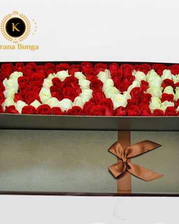 1 Bh bunga box terdiri dari : Mawar merah Mawar putih Balon Boneka Baby breat Free kartu ucapan