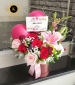 Rp 900.0001 Bh bunga meja terdiri dari : Mawar pink Baby breat Ruskus Snap dragon Kartu ucapan
