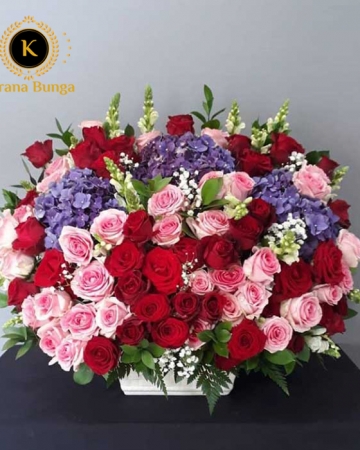 Rp 850.000Rangkaian bunga meja terdiri dari : Mawar merah Mawar peach Bunga lily putih Bunga carnation putih Baby breat Free kartu ucapan
