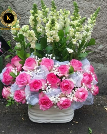 Rp 700.000 Rp 750.000Rangkaian bunga meja terdiri dari : Mawar Pink Mawar putih Bunga lily Snapdragon Babybreat Free kartu ucapan
