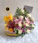 Rp 700.000 Rp 750.0001 Bh bunga meja terdiri dari : Mawar kuning Mawar orange Baby berat Bunga Lily Casablanca Snap dragon Kaspea Kartu ucapan