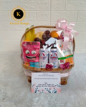 1 Bh parcel buah terdiri dari : Apel fuji Jeruk sunkist Pear madu Jambu crystal Anggur Susu bear brand u-C1000