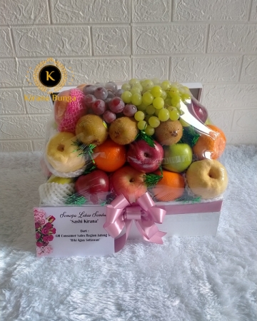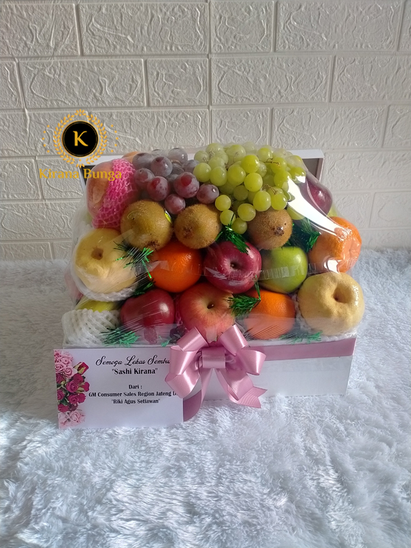 Rp 350.0001 Bh parcel buah terdiri dari : Apel fuji Pear madu Jeruk sunkist Kiwi Anggur Apel merah Mawar putih Baby breat Free kartu ucapan