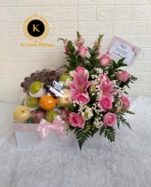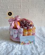 Rp 400.0001 Parcel buah bunga tediri dari : Pear madu Pear hijau Jeruk sunkist Apel fuji Jambu crystal Anggur Bunga lily Mawar pink Baby breat Free kartu ucapan