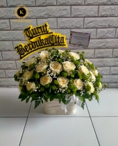 Rp 3.500.0001 Bh bunga meja terdiri dari : Mawar putih Baby breat Bunga kremit Daun ruskus Free kartu ucapan Gratis kirim
