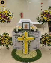 1 bh Paket bunga duka cita terdiri dari 2 Bh standing flower 2 Bh bunga meja 1 Bh bunga salib