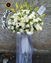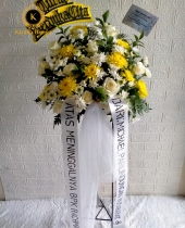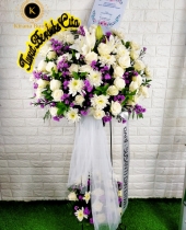 1 Bh standing flower terdiri dari : Mawar putih Bunga krisan Bunga aster Baby breat Free kartu ucapan
