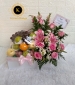 Rp 600.0001 Bh standing flower terdiri dari : Mawar pink Bunga aster Bunga krisan Free kartu ucapan